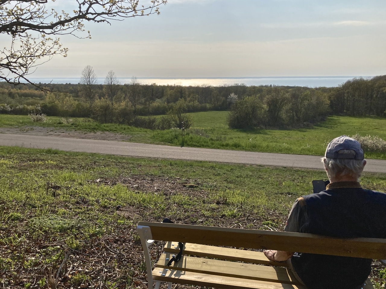Pelle Grönberg har snickrat ihop en fin soffa med hjälp av en gammal smidessoffa. Den står nu ovanför Övre Gärdesvägen mittemot stigen till tennisbanan med härlig utsikt över Kalmar sund.
