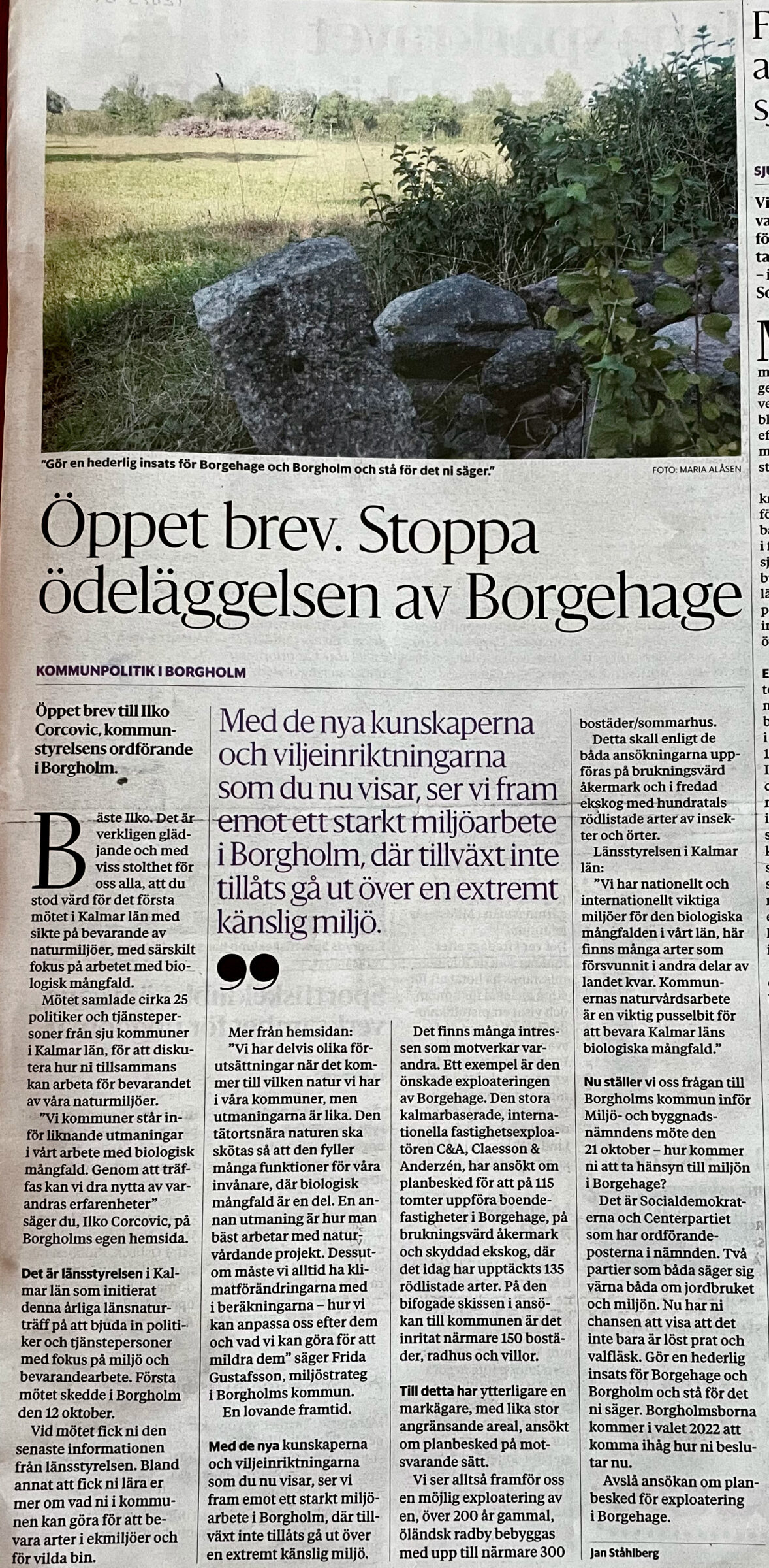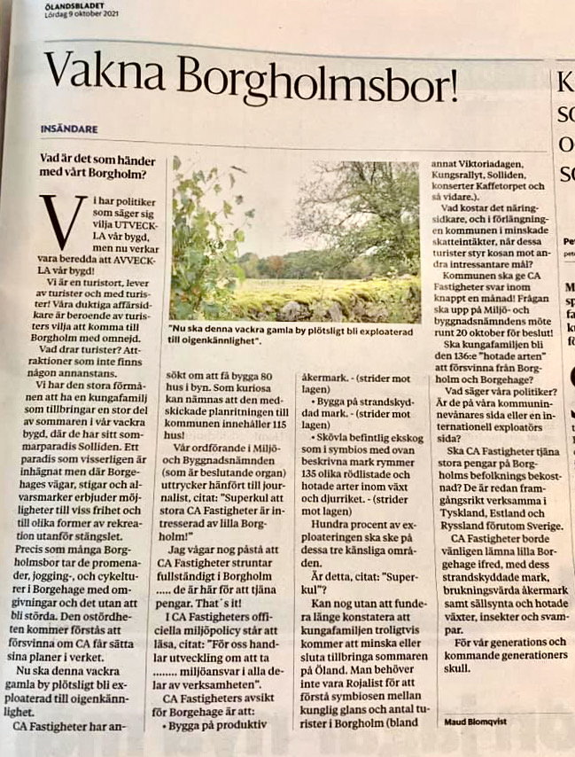 Både i Ölandsbladet och Barometern har både sommar- och fastboende i Borgehage publicerat insändare och debattinlägg. Här är några (fler finns på Vi i Borgehage på FB).