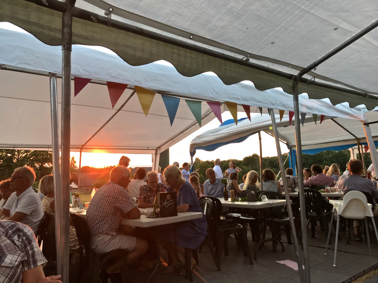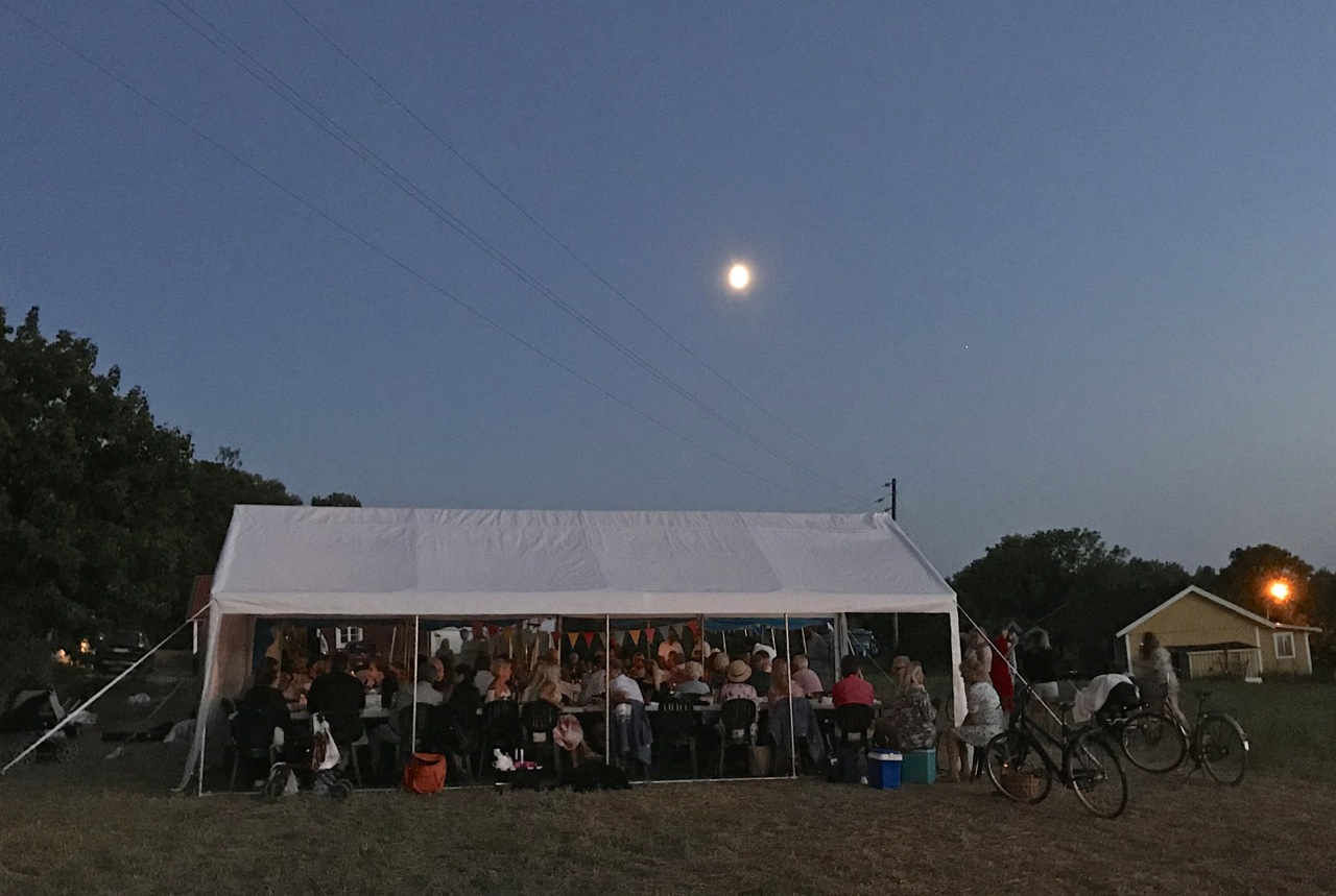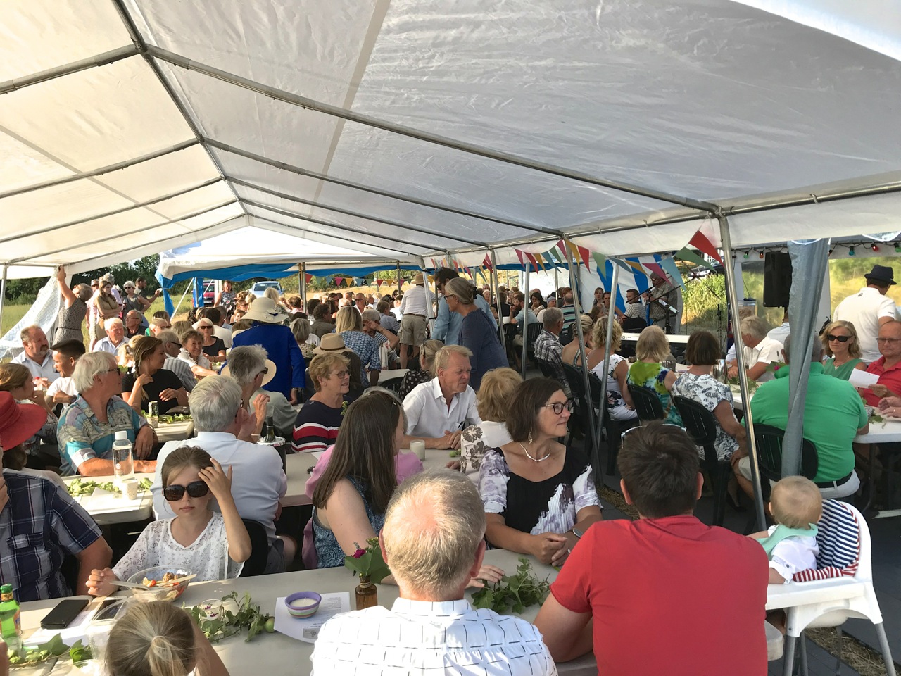 Nära 200 personer samlades i partytälten för lördagskvällens (21 juli 2018) jubileumsfest på åkern vid Övre Gärdesvägen. Som allt annat var arrangemanget otroligt välplanerat och de frivilliga många. Till skillnad mot i byns forna tider lyckades kvällen bli både glad och festlig utan ett enda fylleri eller slagsmål!