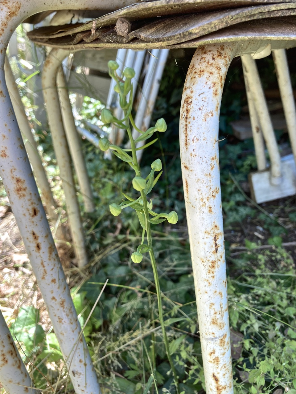 På hamnplan har röjningen tyvärr inte skett med så stor känsla. Här har samtliga grönvita nattvioler och andra unika orkidéer försvunnit, trots att dessa också är skyddade enligt lag. En enda nattviol har lyckats gömma sig under några gamla stolar och kan snart få chans att slå ut!