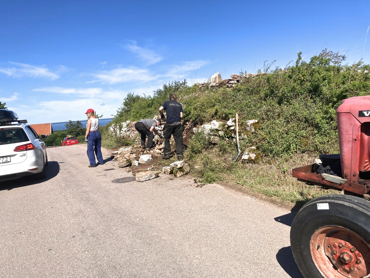 Lördagen den 25 juli inleddes reparation av muren mittemot Kvarnbacken på Borgehagevägen, ett arbete som kommer att ta lite tid. Muren har länge utgjort en fara, då stenar har rasat ner. Arbetet beslutades vid årsmötet för Borgehagevägen som hölls den 19 juli.