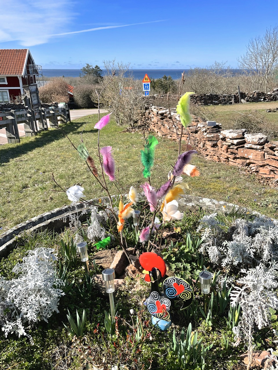 Trevligt påskpyntat i Borgehage av Katarina och Gunnar som bor tvärsöver vägen!