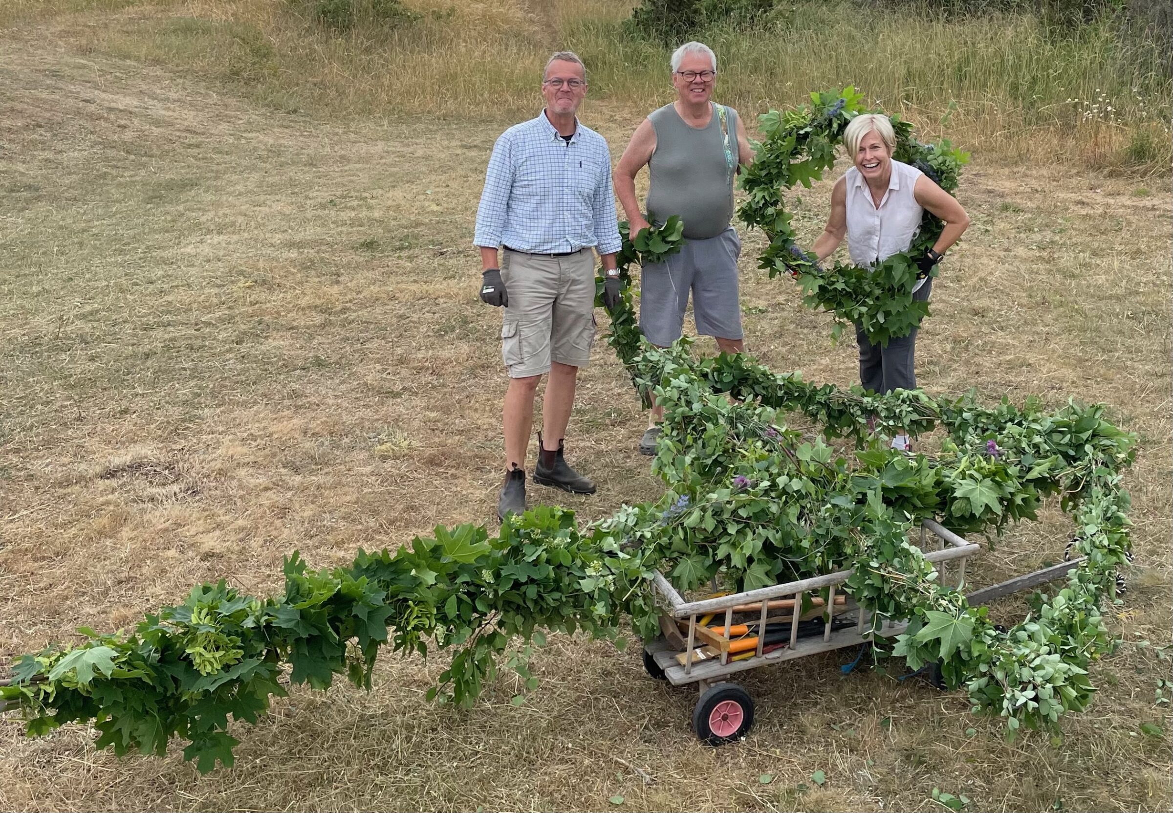 Dagen före midsommar kläddes stången av detta gäng plus fotografen, Margareta Wiberg Roland: Jonas Henriksson, Anders Roland, och byalagets ordförande Anette Wickholm.