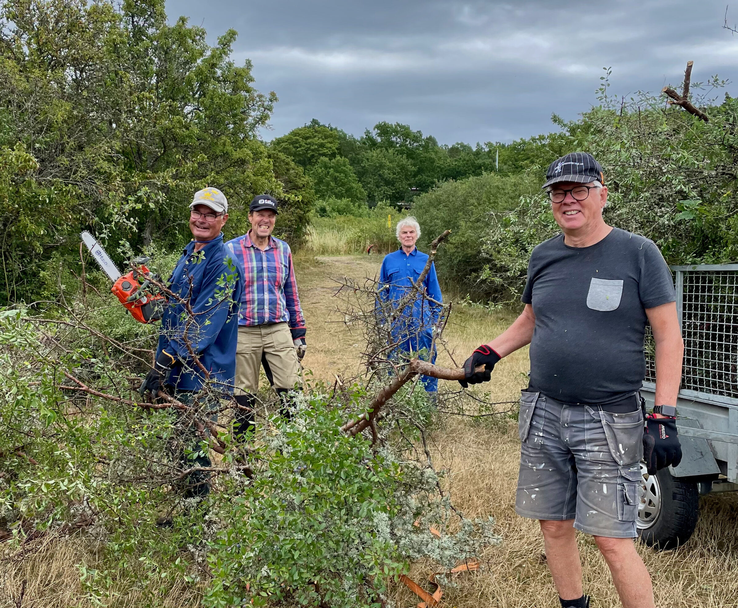 Trots kort varsel kom det tillräckligt med frivilliga krafter för att få bort taggiga buskar, högt gräs och vass på badstranden. Totalt sex lass forslades bort till bålet vid infarten till byn. Kvar ligger en del gräs och vass som den som känner för det gärna får köra bort.