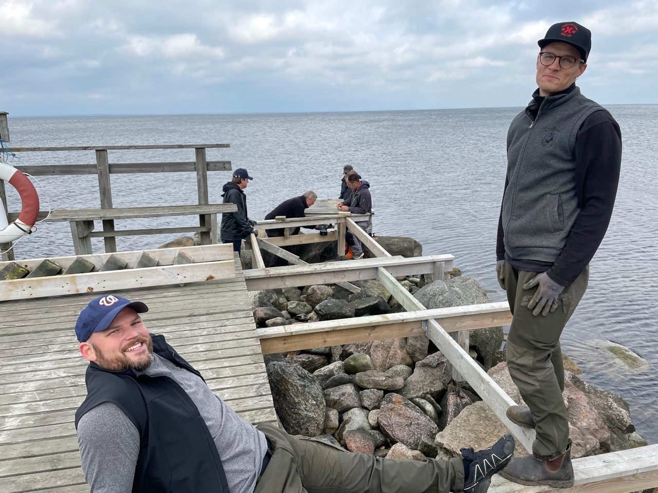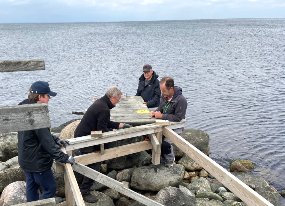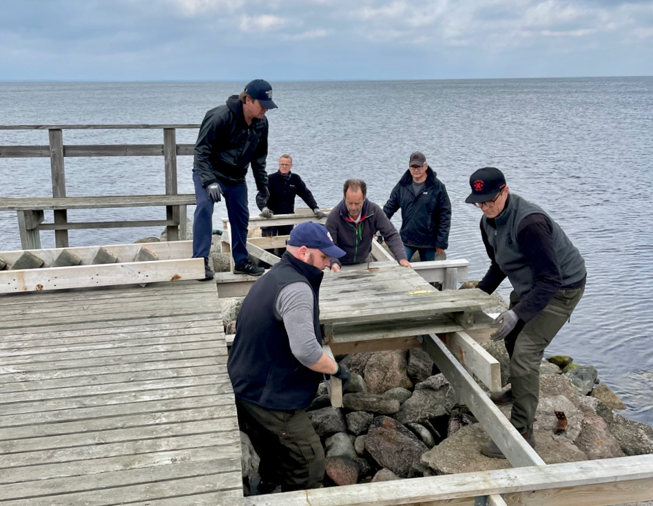 Ett glatt gäng samlades för att rädda badbryggan från höstens och vinterns oväder.