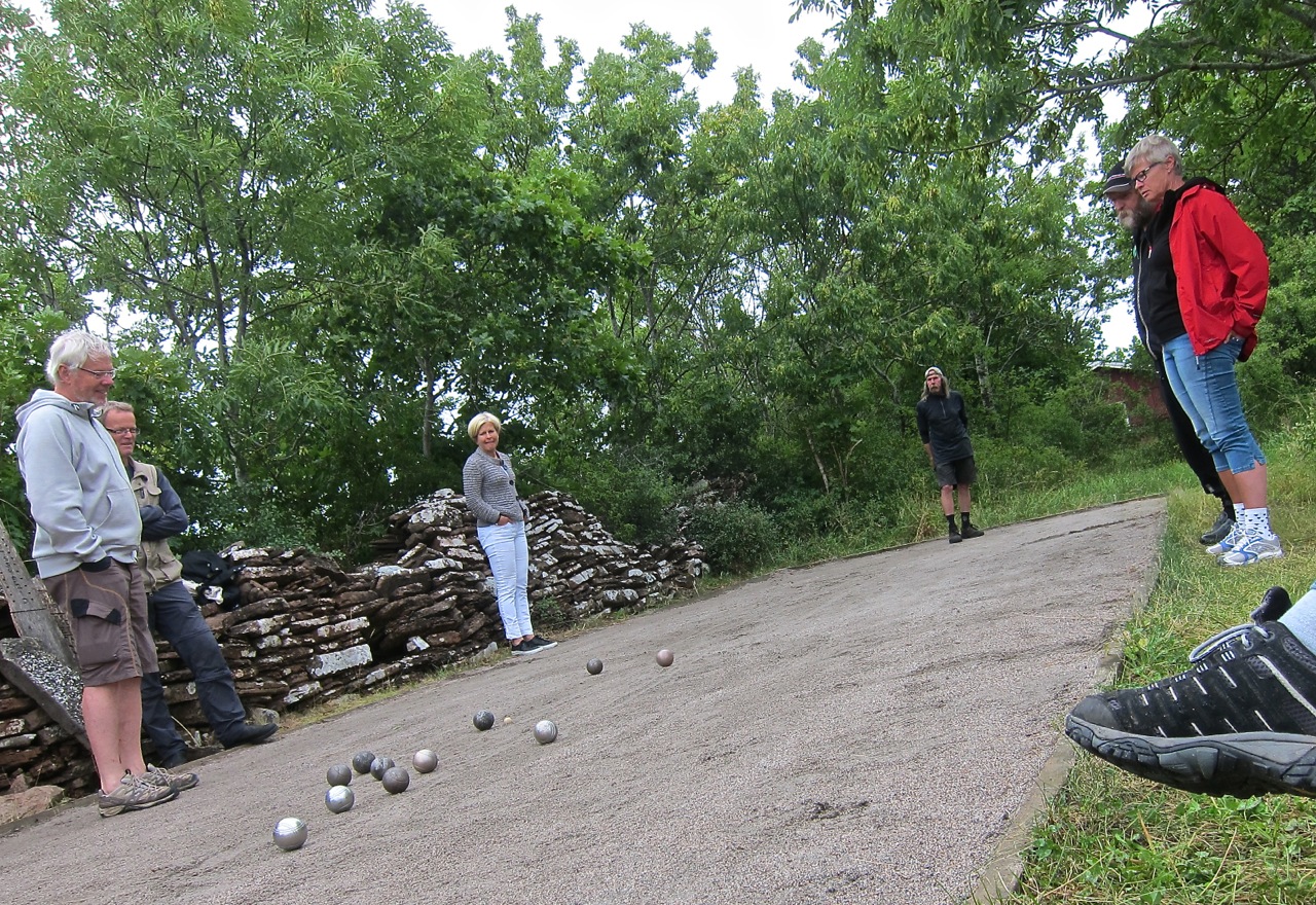 Efter regn kommer solsken. Och även om grillfesten inte blev av bjöd bouleturneringen på en oliiidligt spännande final mellan Drängarna (Ronny och Mats) och NB5 (Gunnel och Jonas). Den lilla publiken blev med tiden tämligen stor i takt med att solen började sprida sina nedgående strålar över banan. Ingen blev besviken, för det blev precis så rafflande som en final ska vara.