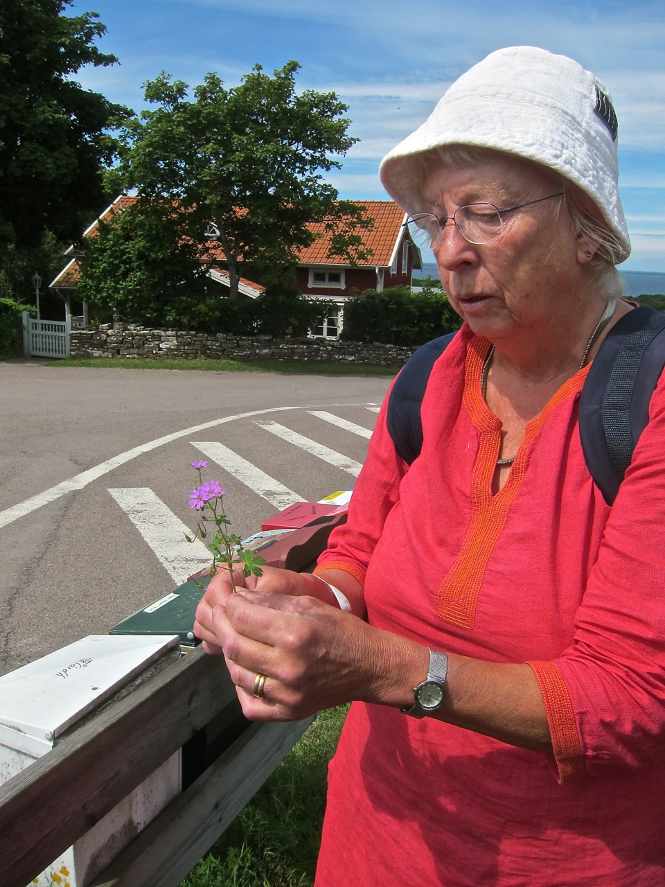 Ingrid Klefbäck ledde lördagen den 16 juli en vandring för att visa några av de växter, en del riktigt sällsynta, som finns i Borgehage by. Redan vid övre brevlådorna hittade hon en skuggnäva, som enligt Den nordiska floran av Bo Mossberg är ”ganska sällsynt”. Vid och väster om Nedre Gärdesvägen finns flera mycket sällsynta, bl a stenfrö, skogskorn, skugglosta och strävlosta, knippnejlika och knölvial. Och nere vid bryggan växer stor sötväppling. Det är faktiskt svårt att tro att de är ovanliga, eftersom många av dessa rariteter just här växer i stor mängd.